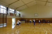 体育館でバスケットボール、自主的な活動を自分たちで考え、決