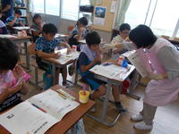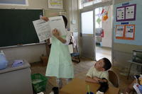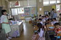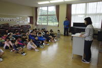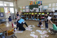 11日の5校時、天栄幼稚園の園長先生と先生が1年生の