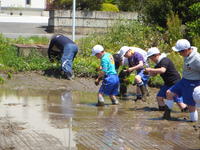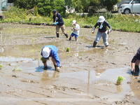 で、田植えを実施しました。絶好の田植え日和で、講師の吉成さん