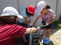 宗方さん、芳賀さんの指導のもと、ていねいに苗を植えている子ど