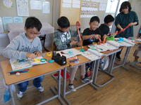 湯本小・大里小交流1回目、高学年の交流の姿です。