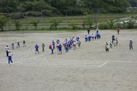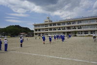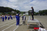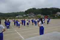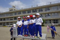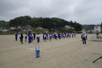 14日、第1回目の運動会全体練習で、開閉会式の練習を