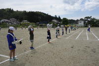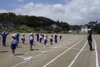 10日、全校リレーの練習をしました。小規模校の本校では、