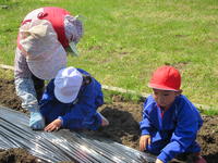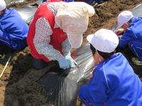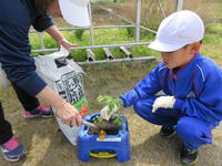 9日、2年生もトマトの苗植えを行いました。1年生での