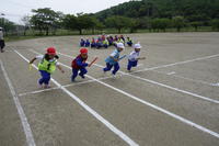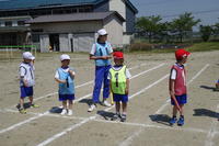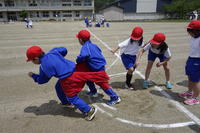 下学年では、チャンス走やデカパンリレーの練習を校庭