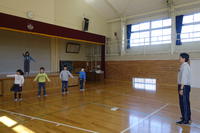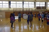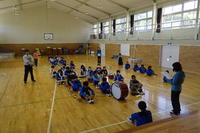 体育館での全校生での鼓笛練習です。