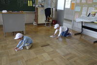 また、雑巾での拭き方をていねいに教えている姿があり