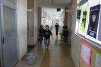 先日の教室ワックスがけに続いて、本日は廊下のワックス