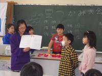 27日、児童会の健康・安全委員会主催の「豆つかみ大会」を行い