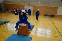 1,2年生が体育の学習で、とび箱に挑戦しました。寒い中での