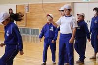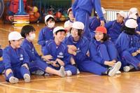 15日のなわとび記録会、最後に低、中、高学年のチームで