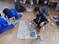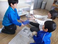 収穫した米のもみがらをとる活動に取り組みました。いろいろ調べて、