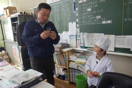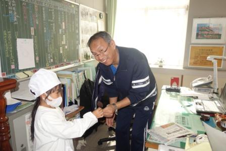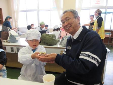たちは食べていました。校長先生、教頭先生にもおすそわけ、「よくでき