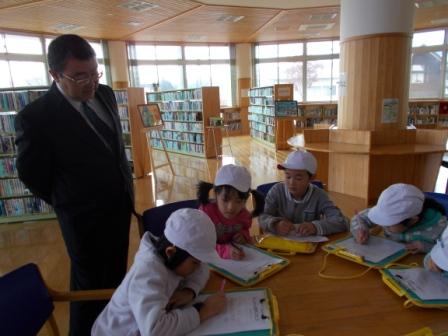 5日、2年生が生活科の学習で、文化の森にある村図書館に見学に