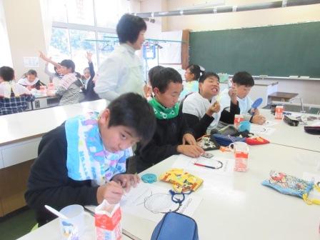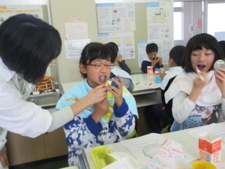 5日、高学年で歯科教室を実施しました。染め出しを行い、