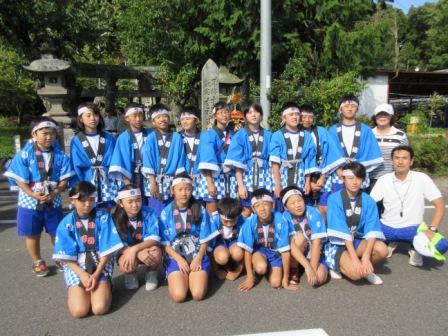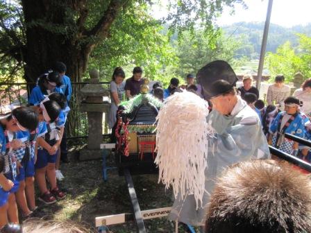 でおみこし行列をしたあと、地区祭礼の神事を見学し、その後、