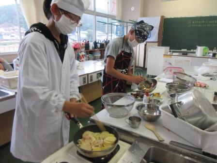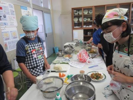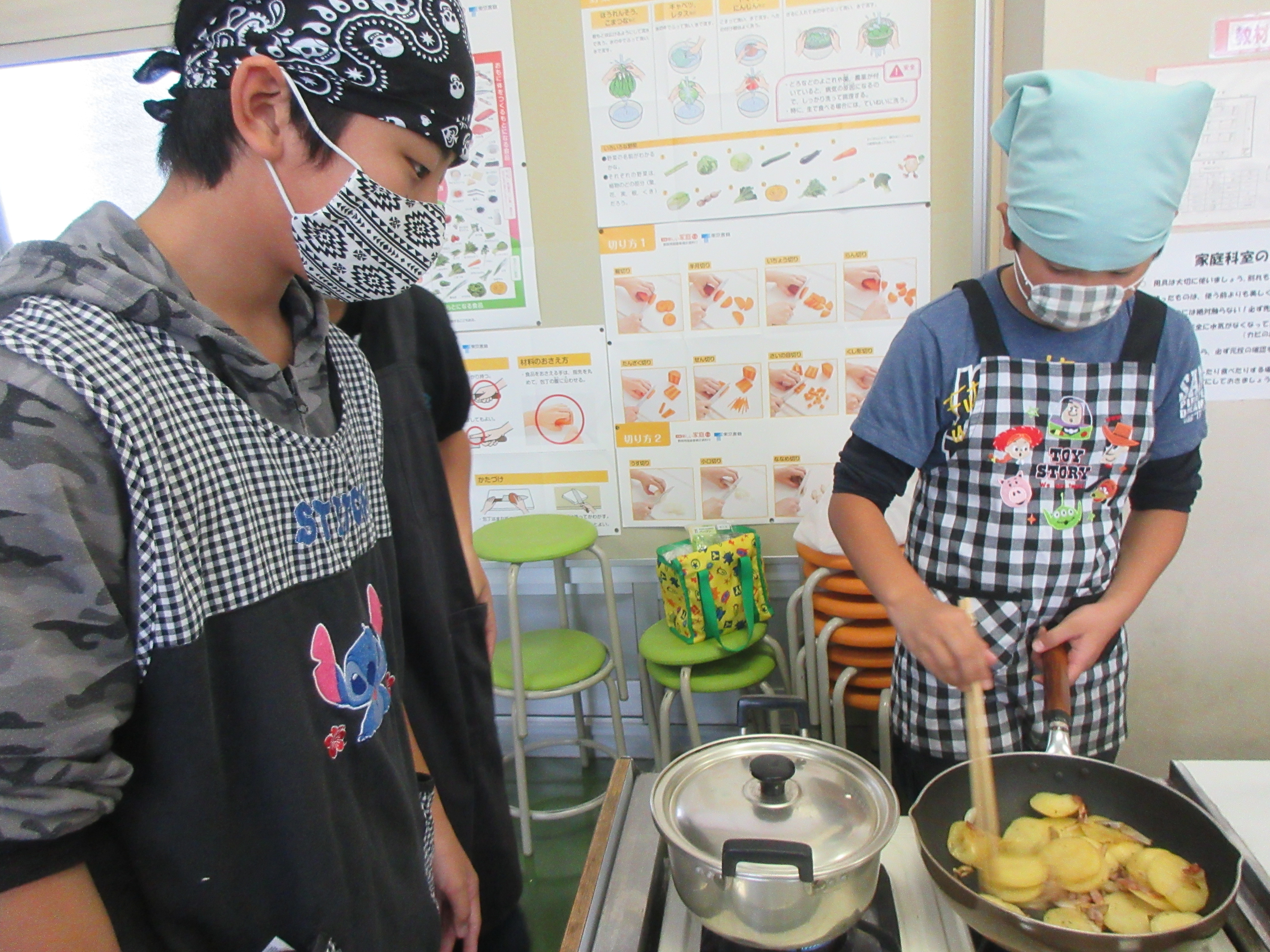 5,6年生が家庭科の学習で、調理実習に取り組みました。