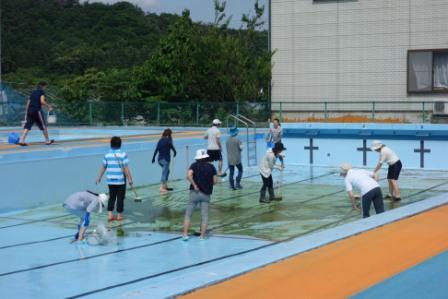 8日、本校のプール清掃を行いました。今年度は初めて、保護者の