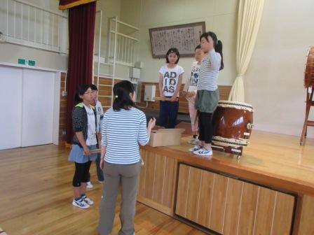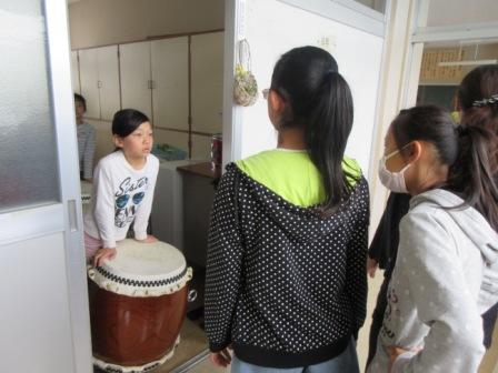 たて山わらし太鼓」の練習を開始しました。初日は、全校生で