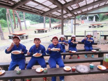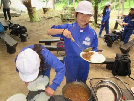 リーなどのレクリェーションを楽しみました。まきで焚くお米やカレーは、