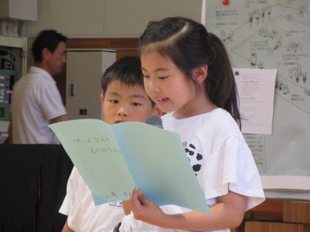 の代表が、水泳の学習への意気込みを発表しました。子どもたちは、