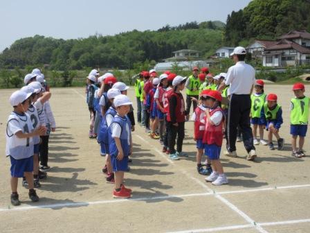 8日、運動会全体練習の第1回目を行いました。あいにくの雨でし