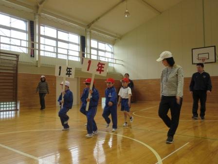 たので、体育館での実施でした。開会式での入場の仕方やラジオ