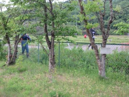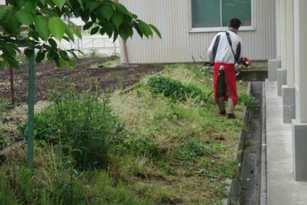 校庭の周囲もあっという間に草が伸びてきています。業務員さんが