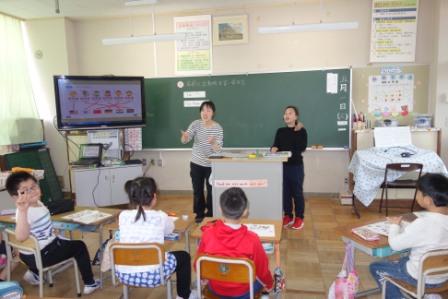 順調に進められています。写真は3年、4年で授業を実施したようす