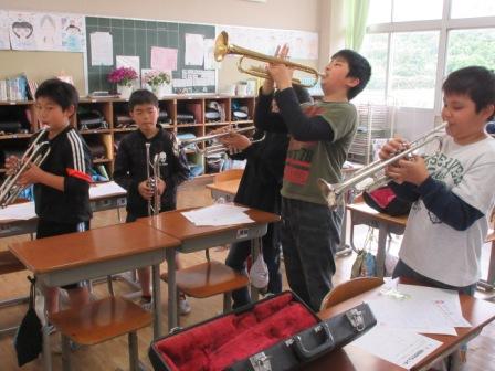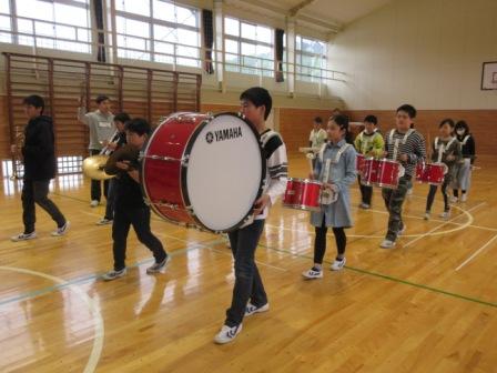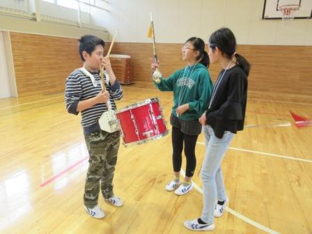 鼓笛、ダンス(よさこい)なども全校生の参加です。写真は鼓笛の練習の模様です。