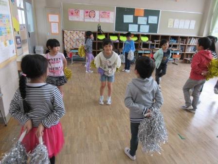 よさこいを教えに1年生の教室を6年生が訪問してくれました。頼りになります。