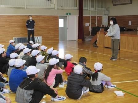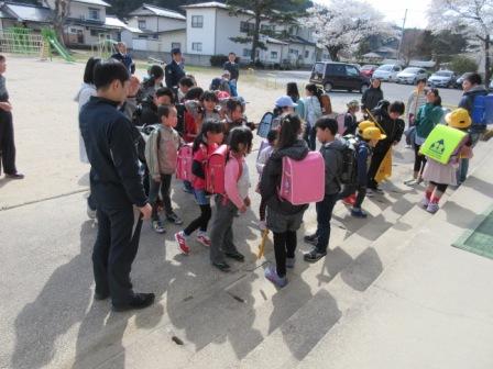 10日、第1回の交通教室を実施しました。天栄駐在所の新田様においで