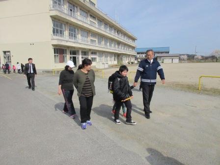 に担当教師がつき、危険箇所を確認しながら下校指導をしました。4月は、