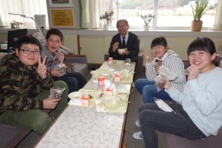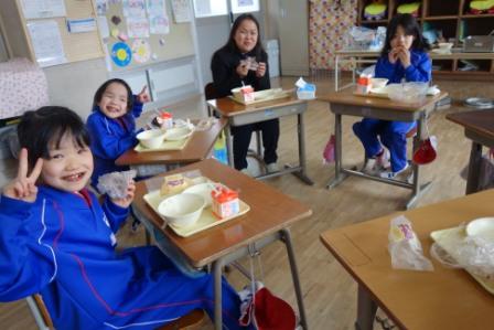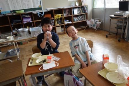 げパンが出て、お口を真っ黒にして食べている姿がありました。6年生も校長室で