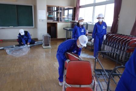 作業を手伝ってくれました。煙突撤去や机、椅子の移動、清掃などの