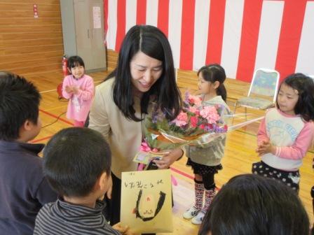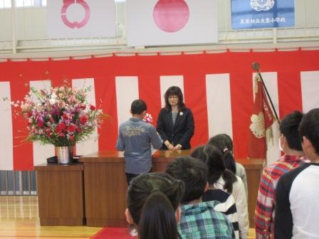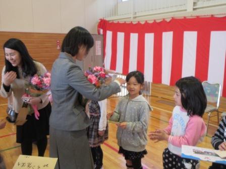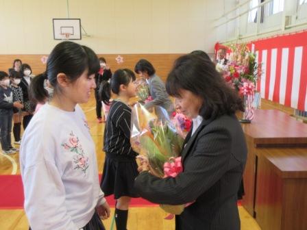 ました。5年生代表のおくることば、3人の先生方の心あたたまるあいさつに
