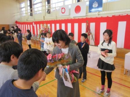 3月28日、離任式があり、お世話になった3人の先生方が転任されていかれ