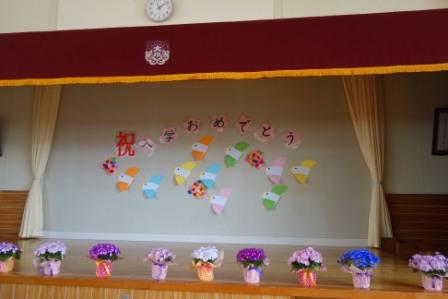 は装飾の生花が届き、本番の雰囲気がととのってきました。放課後、祝電など
