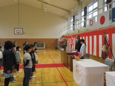 代表が歓迎の言葉をのべました。また、6年生に転入生が一人あり、校長先生から