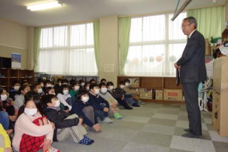 校長先生より、東日本大震災の大きさや被害、今も続いている影響など