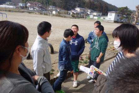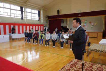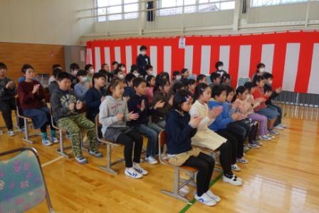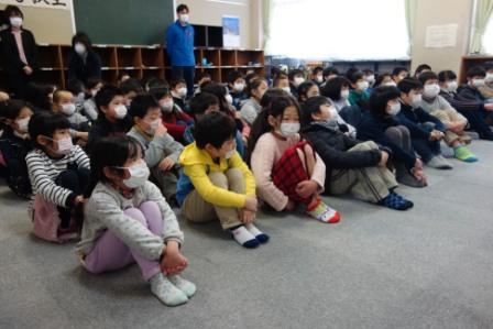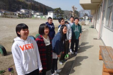 13日に天栄中の卒業式を終えた大里小の卒業生が昨日、本校を訪ねてきて