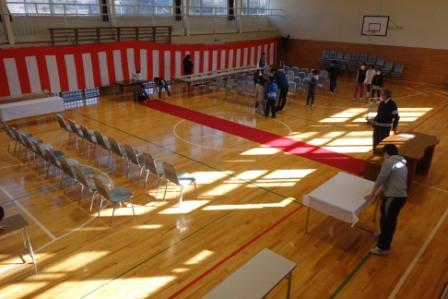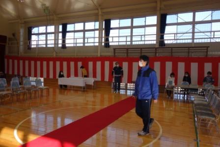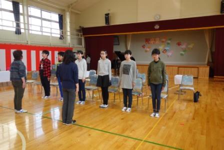 12日の放課後、教職員と4年、5年生の子どもたちと体育館で卒業式の会場