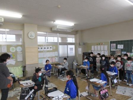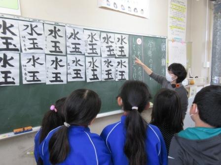 なります。その予習として、3年生の毛筆の最後の学習を見学