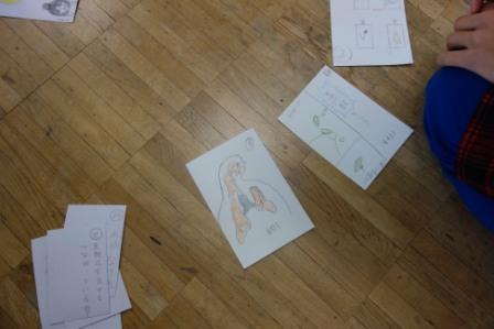 出す?」などを読み札にし、イラストや絵を加えた答えを取り札に手作り