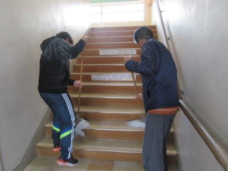 14日の放課後、教職員でろう下・階段のワックスがけをしました。3月になって