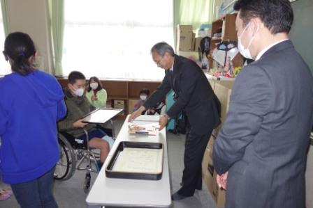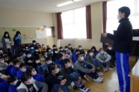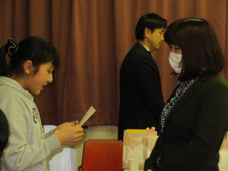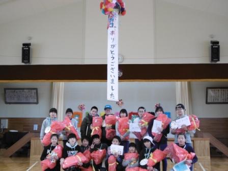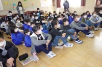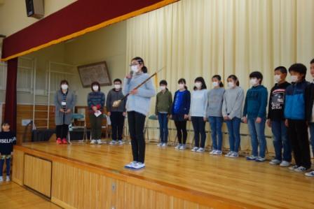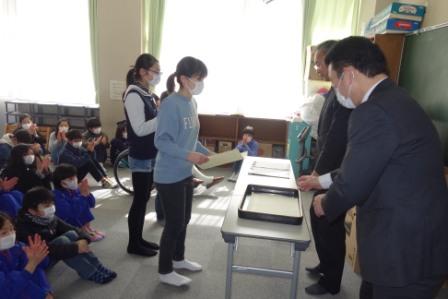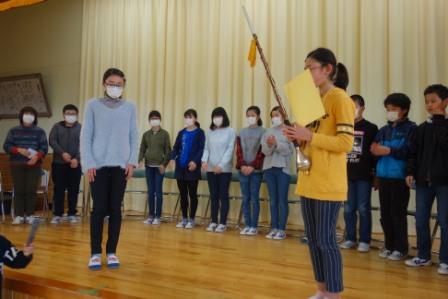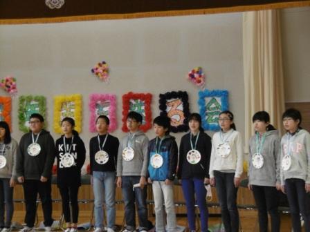 1日、大里タイムで3月集会をしました。村の体育優秀選手2人とユネスコ平和作文優秀賞の3人