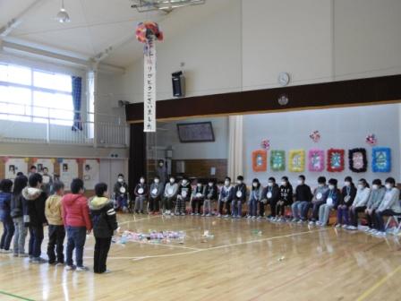 3月2日、6年生を送る会を行いました。最初に6年生16人を題材にした「わたしは誰でしょう」