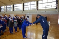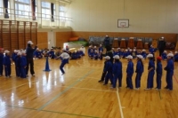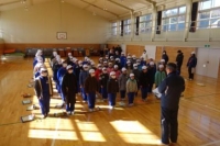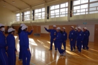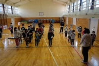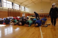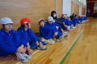 16日、なわとび検定会の前に「シェークアウト」(県下一斉防災訓練)を実施しました。