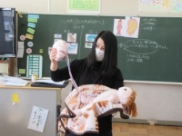 どを教えていただきました。その後、実際の重さと大きさの赤ちゃん人形をだっこする体験