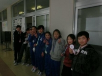 子どもたちは首にメダルを飾ってもらって記念写真、とても喜んでいました。保健